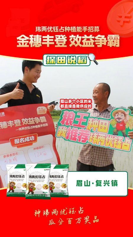 金穗丰登·效益争霸 ,探田眉山复兴镇120亩玮两优钰占种植大户:产量高、米质优、粮非常好卖!