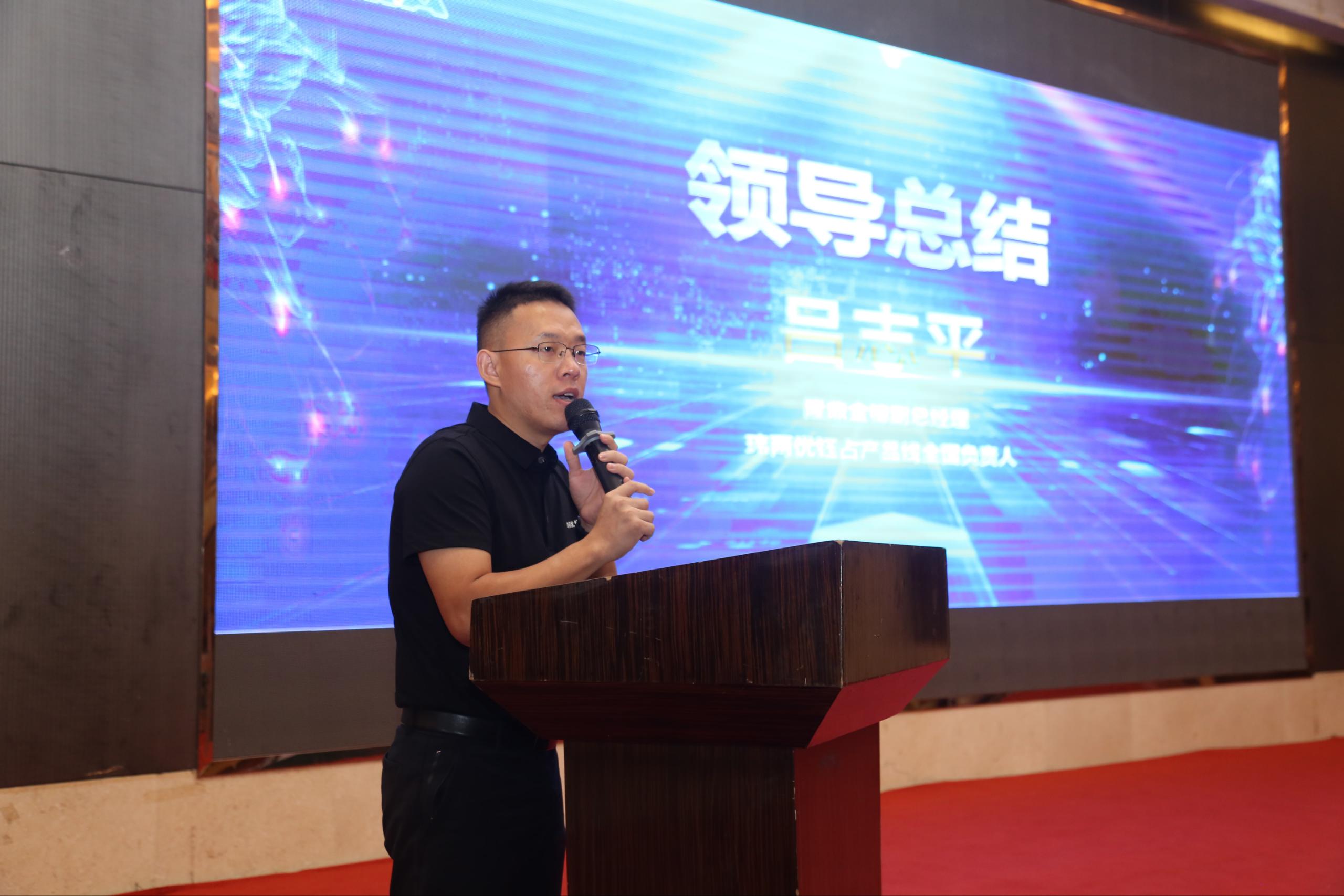 室内会议在钟祥市亿丰种业总经理钟立雄的欢迎词中拉开帷幕。他公布了田间实测数据,并表达了对玮两优钰占推广前景的坚定信心。随后,四川隆鼎金穗湖北大区玮两优钰占产品线负责人徐军强系统介绍了该品种的育种背景、特性优势及栽培要点,强调其在抗逆性、米质和产量方面的综合实力,致力于帮助农户实现“种得好、卖得优”,为农户和经销商赢得实实在在的收益。